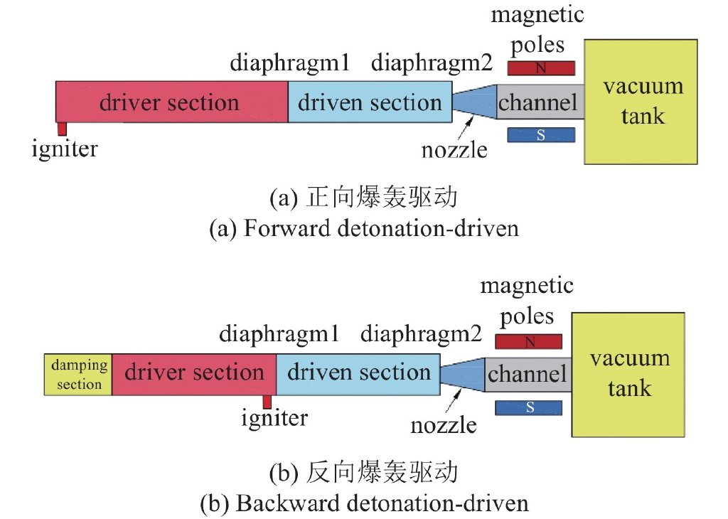 激波管的驱动方式有轻气体驱动、燃烧驱动和自由活塞驱动等,爆轰驱动是激波管驱动的一种特殊形态,其能产生极大的输出功率,能量释放率可轻松达到普通燃烧的万倍以上,如果以爆轰驱动激波管作为磁流体发电机的能量源,可以产生导电气体更优良的等离子体,同时还获得极大的速度。