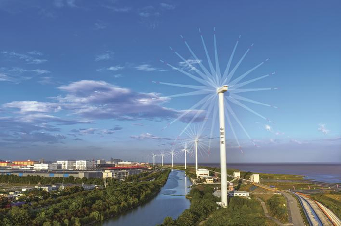 点评:这幅照片把“科技感+工业美学”玩出了新花样。风力发电机放射状的叶片结构,像是天空中绽放的巨型花朵,配上澄澈的蓝天与蓬松的白云,给硬核的工业场景裹上了“清新滤镜”。
