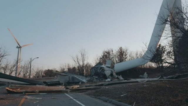 【韩国盈德风力发电园区一风力发电机受损,倒塌至道路】#海外新鲜事##热点现场#